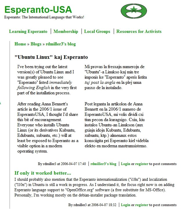 ESPERANTO : Linux Ubuntu en langues Anglaise... et Espéranto.